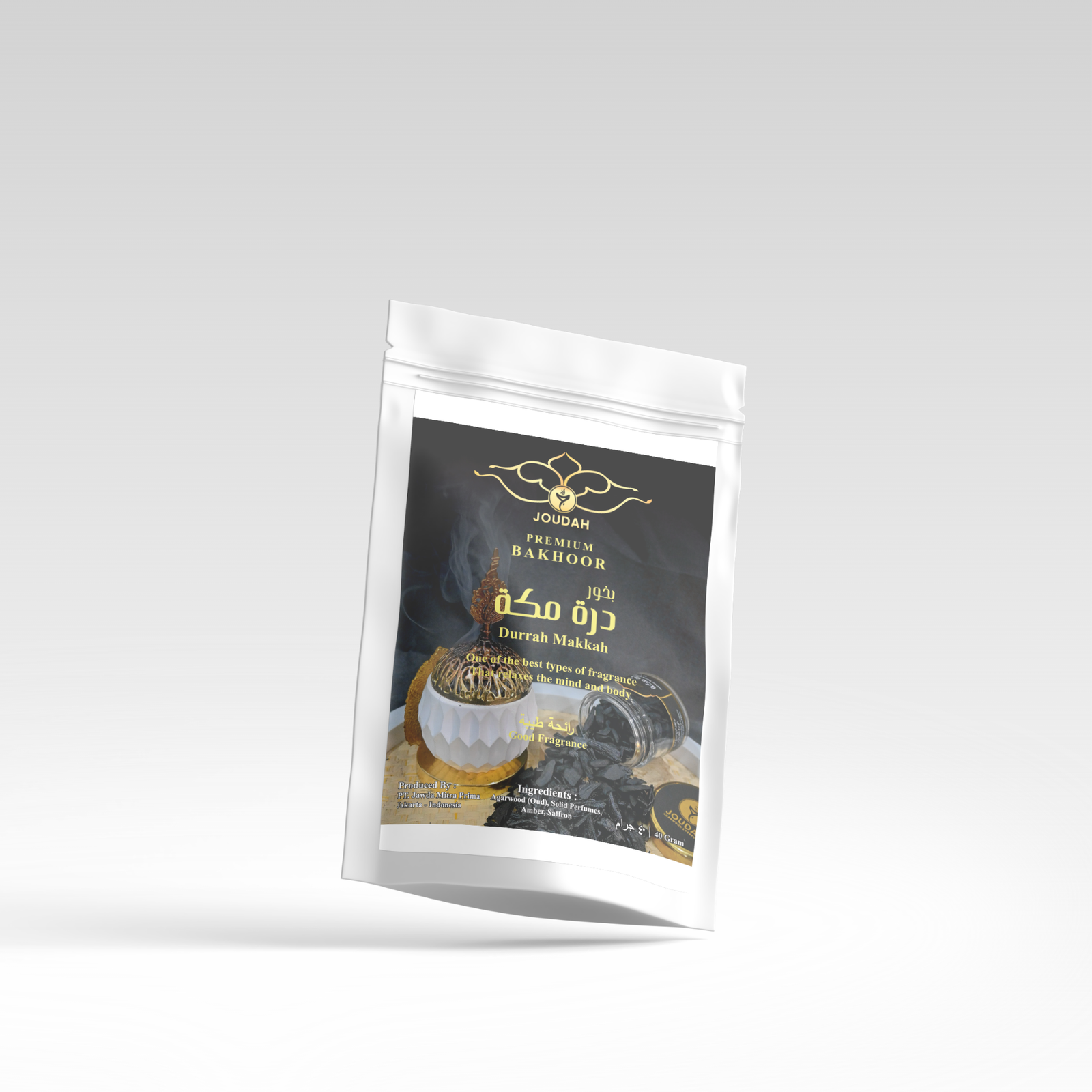 Dengan isi 40 gram dan estimasi pemakaian 14–30 hari (1 kali bakar per hari), Durrah Makkah versi pouch menjadi pilihan praktis untuk menikmati keharuman yang khusyuk, hangat, dan berkelas setiap hari.